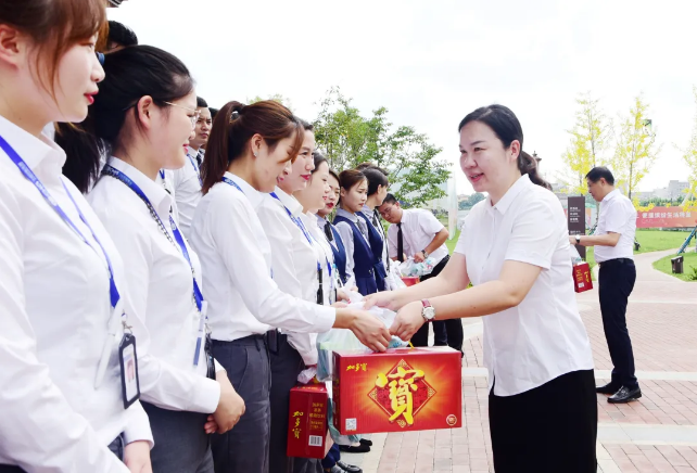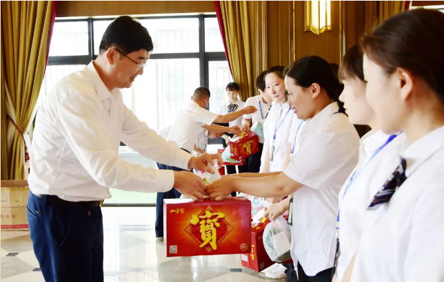 图 | 集团副总裁朱玉娟为临泉项目公司员工送上清凉物品