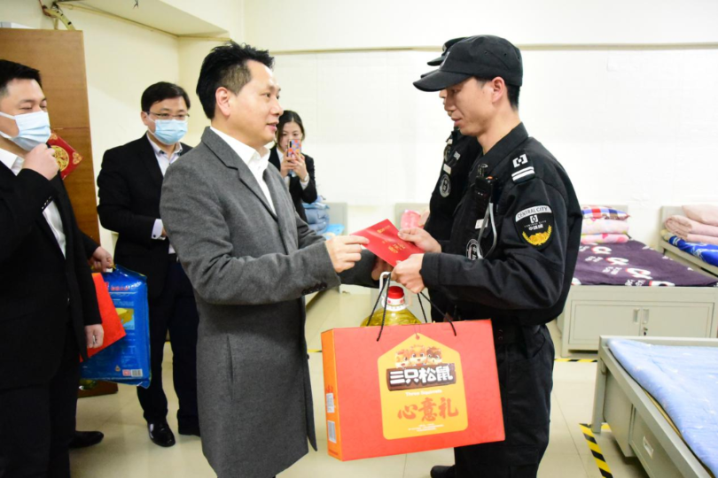 中环CBD物业安管部安管员小王家庭经济同样困难,是在册建档立卡的贫困户。父亲多年前因意外离世,家中年老母亲体弱多病,现还育有3岁幼女,其一人的经济收入难以维持基本的家庭生活。在了解过家庭状况后,余董事长对其表达了关怀,勉励其要勇敢地去面对生活所带来的压力与重担,为孩子做好表率,生活会越来越好。