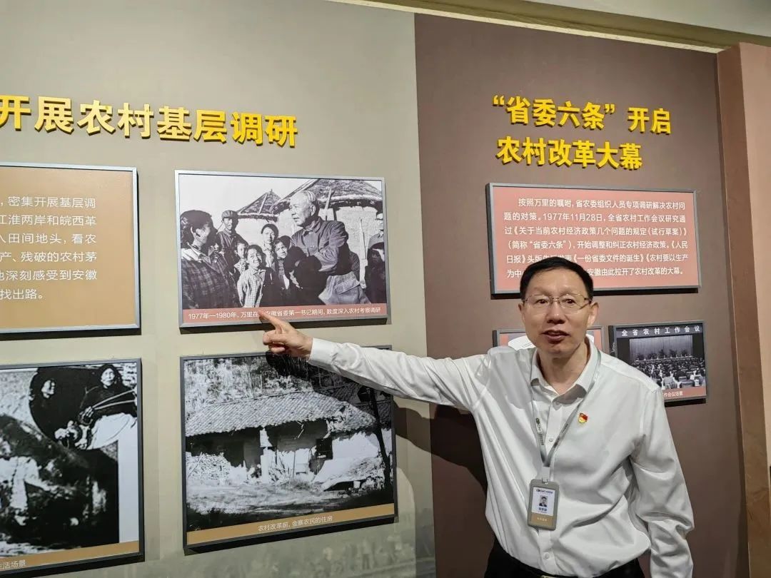全体党员首先参观了位于合肥市肥西县山南镇的中国农村包产到户纪念馆,这是中国农村首个包产到户纪念馆。纪念馆门口原安徽省委副书记王光宇题词的“小井庄”几个大字,证明了这个小小的村庄曾经的辉煌和给改革开放带来的影响。党员同志们十分钦佩这些敢为人先的先辈们,克服种种困难,作为党员先锋冲锋在前,为百姓谋福利!