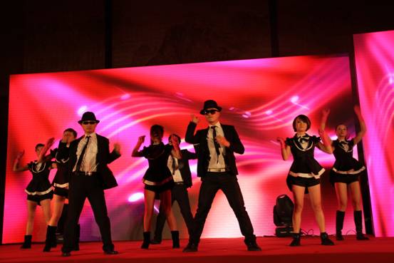 整台晚会节目高潮迭起,精彩纷呈,让忙碌了一年的中环员工得到了彻底地放松。商业管理公司的《夜光舞》借助特制的荧光道具,配合poping 风格的音乐,灵动绚丽,舞动出奇妙的生命之歌;物业管理公司的《军体拳表演》,落脚霹雳轰鸣、坚定有力、飒爽英姿;中恒项目公司的小品《唐伯虎点房产》老剧新演,可谓是才子佳人,笑点频出;舞蹈《DANCE MEDLEY》装扮华丽,充满了动感和活力;员工家属王子萱小朋友和父亲带来的相声《吹牛》,惹得全场观众捧腹大笑;经营管理中心带来的舞蹈《春天花会开》,帅哥们一上场就凭借一身草裙,亮杀了所有观众的眼睛。当晚最有亮点的还数董事长余总即兴演唱的一首《冬天里的一把火》,全体高管也纷纷上台合唱及伴舞,高歌热舞,魅力四射,热情得就像冬天里的一把火,点燃了全场的激情。夸张搞笑的造型、热情洋溢的演出成为当晚的一大亮点。