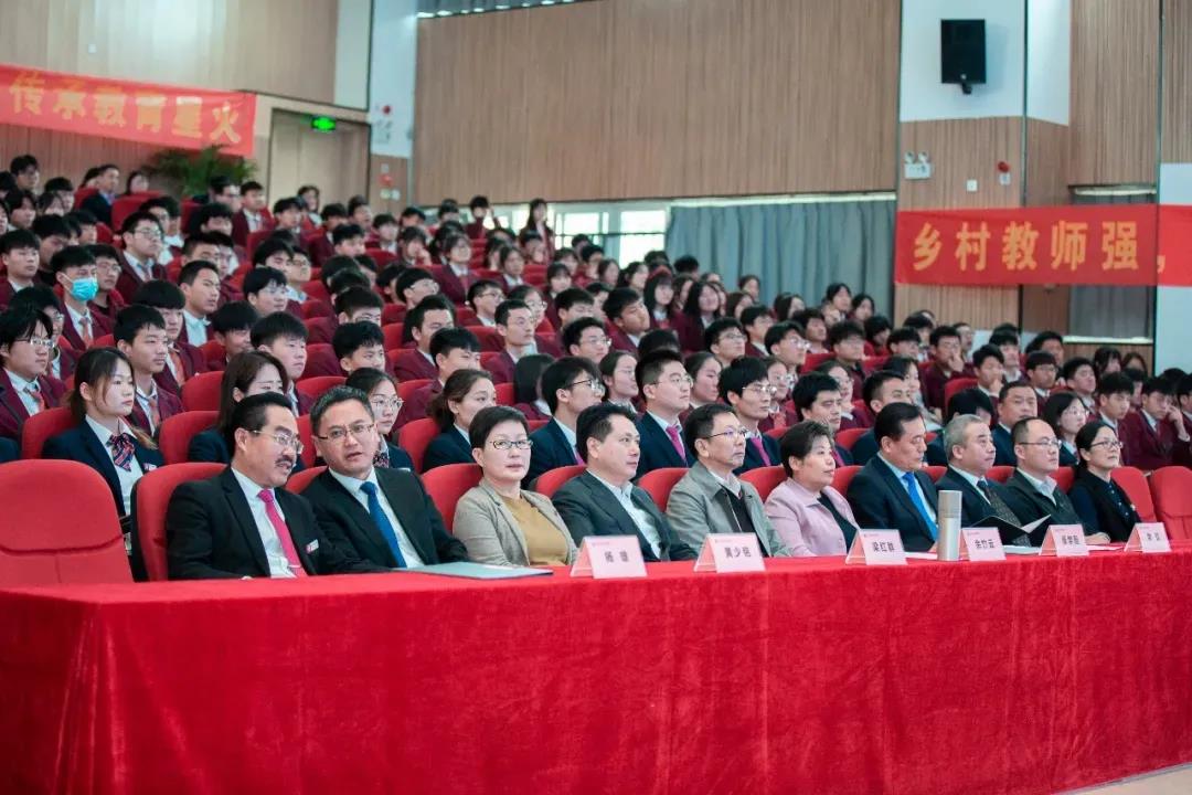 启动仪式上,北大新世纪阜阳附属学校杨雄校长致欢迎辞,他代表学校及全体教职员工向莅临现场的各位领导表示热烈欢迎。杨校长说:“乡村教师肩负起培根、启智、润心的重任,为山区父老、农村学子驱除蒙昧,带来希望。我们要向广大乡村教育工作者致以崇高的敬意!余董事长领导的中环产业发展实力雄厚,教育报国一片丹心。除了斥资8亿元建了北大新世纪阜阳附属学校,还勇担社会责任。此次od平台入口官网捐赠的扶持基金项目的启动,对加快提升我市乡村教师队伍的教育素养和综合水平,让社会各届更多的人了解乡村教师,关爱乡村教师,把热心、爱心、责任心永远传递下去起到了点燃星火,燎原爱心的重要作用!”