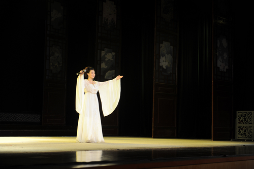 致辞结束后,演出正式开始。由全国“黄梅之星”获得者赵丽领衔演出的《仙女之歌》,7位表演者将仙境般的舞蹈和脆亮的声音带给了现场每一位观众。随后,师从韩再芬女士的美国马里兰大学的学生白莉与搭档演出了一场经典的《闹花灯》,博得阵阵喝彩。