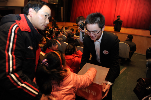 5元、10元、50元、100元……透明的玻璃箱瞬间被滚烫的爱心填满,短短5分钟内,现场就募捐了一万五千八百余元善款。
