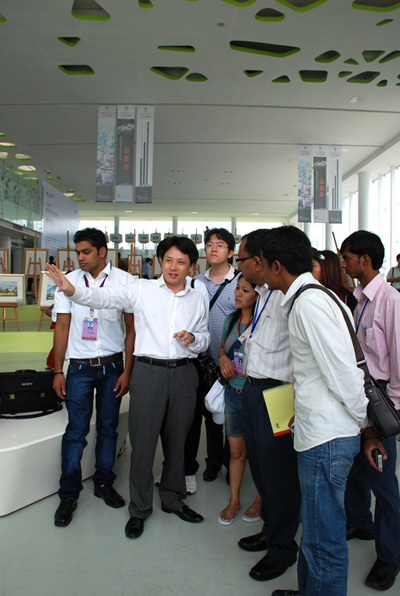 由一百多位印度志愿者、国家级奖项获得者、艺术家、学生代表等组成的第三批印度青年代表团应全国青联邀请来华访问,期间于6月20日至23日在我省进行友好访问,旨在进一步增进中印青年之间的相互了解,促进中印青年的友好交流与合作;作为优秀企业代表的中环地产在这项重要的外事活动中于2010年6月21日,在中环艺术馆迎来了这些尊贵客人——印度青年代表团,他们参加了本次由中环地产主办的徽商故里主题水彩画作品展,是什么吸引了这群异国的朋友?充满神秘特质的印度文化与这场徽派艺术盛典之间将会碰撞出怎样奇异的火花?记者带着深深的好奇来到了举办本次活动的中环艺术馆……