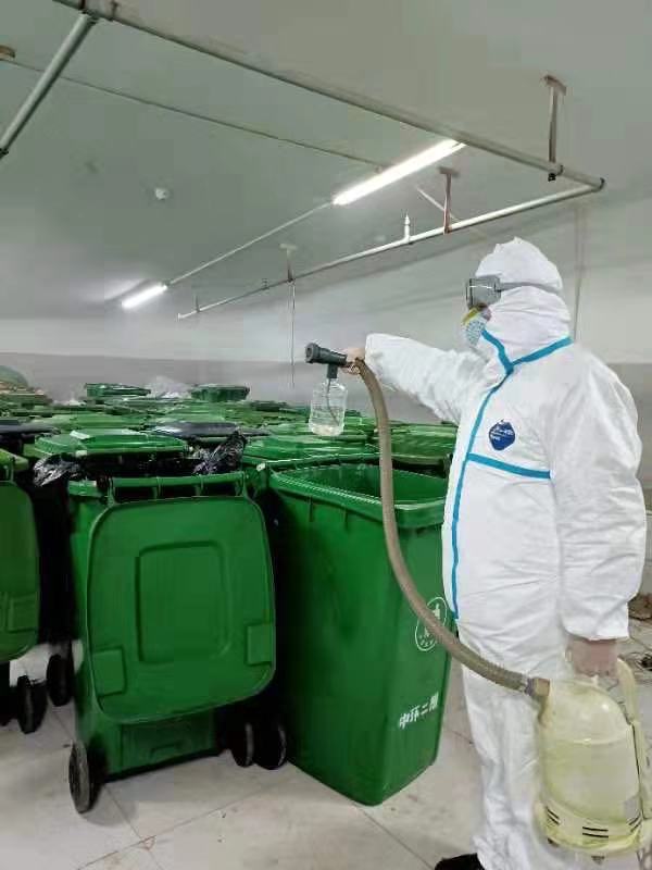 图丨中环工作人员对垃圾桶等公共区域进行消杀