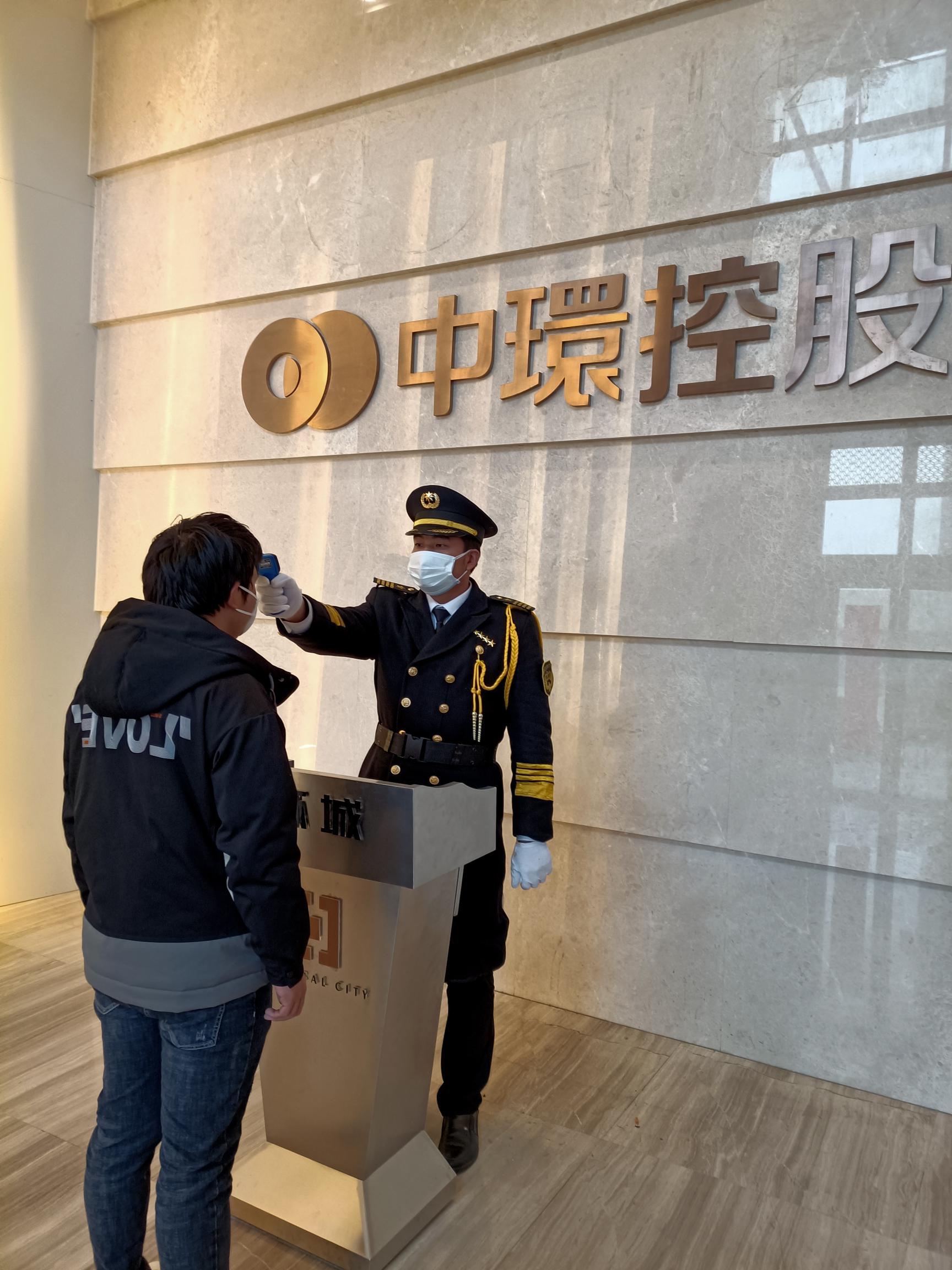 图丨中环工作人员对进出市民进行体温测量