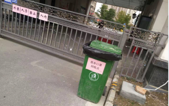 同时,还设有置废弃口罩专用回收垃圾桶,每日清理并消毒,杜绝因口罩引起二次污染而传播病毒。