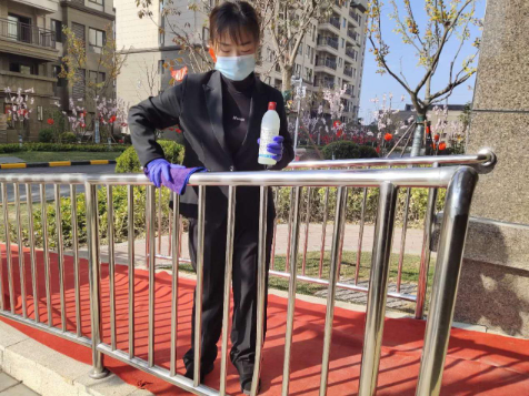 作为一名初入物业行业的新人,也是项目上年龄最小的员工,王慧雯一直用行动诠释着自己的工作态度。除了消杀工作,她每天为所有投入防疫工作的同事量体温。“前期没有买到智能体温测式仪,每量一次就要对体温剂消毒一次。”小小身板撑起了最普通却最重要的工作,常常出现在微信步数排行榜前列的她被同事们称为最可爱的“霸屏小巨人”。