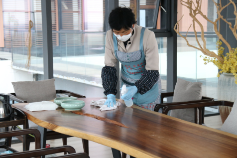 如果说安保是中环疫情防控的第一道“防火墙”,那么保洁就是第二道“防火墙”。疫情期间,所有人员要求居家隔离,家住“新田铺”的保洁阿姨们显得格外有优势。每天天蒙蒙亮,阿姨们就从家里赶到公司开始了他们一天的工作。清洁、消毒样样不落,不留任何一个卫生死角、不留盲区。疫情期间,公司体恤阿姨们的辛劳,要求阿姨们不用天天来公司打扫,却被阿姨们婉言拒绝了,阿姨们说:只要公司有一个人在,我们都必须每天打扫干净,确保每一个地方消毒杀菌。这样我们才放心,你们也能更安心复工。复工后,保洁阿姨们的工作量更大了,为了让同事们放心,每个办公室门口都贴上了消毒的具体时间,和消毒责任人。