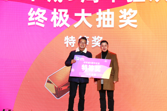 伴随着现场热烈的氛围,令人心潮澎湃的重磅环节——抽奖轮番开启。最受人瞩目期待的金条大抽奖也花落幸运儿之手,中环商管公司总经理张雪亮为其颁发属于中奖者的幸运之奖。活动气氛燃炸,网红创意家电组合、迷你冰箱、烧烤一体锅等精美礼品免费抽免费让你拿回家!