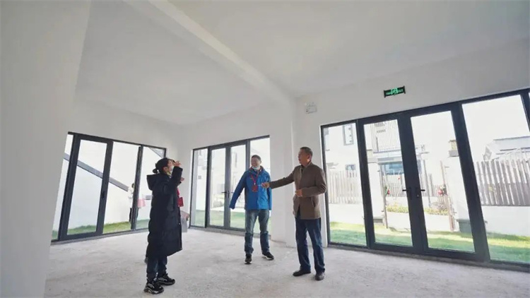 在收房过程中,每一户都会配备三名工作人员,陪同家人查验新家。从家人视角与专业层面,讲解项目区位、周边便利配套以及院子各部位使用功能、耐心回答家人提问,让家人能够更清晰地了解自己位于田园的庭院。