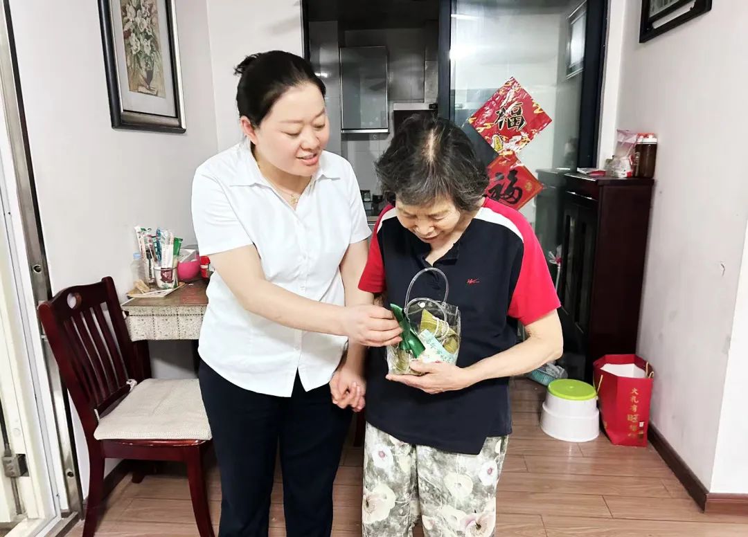 图丨中环·云邸物业工作人员为长者送粽子