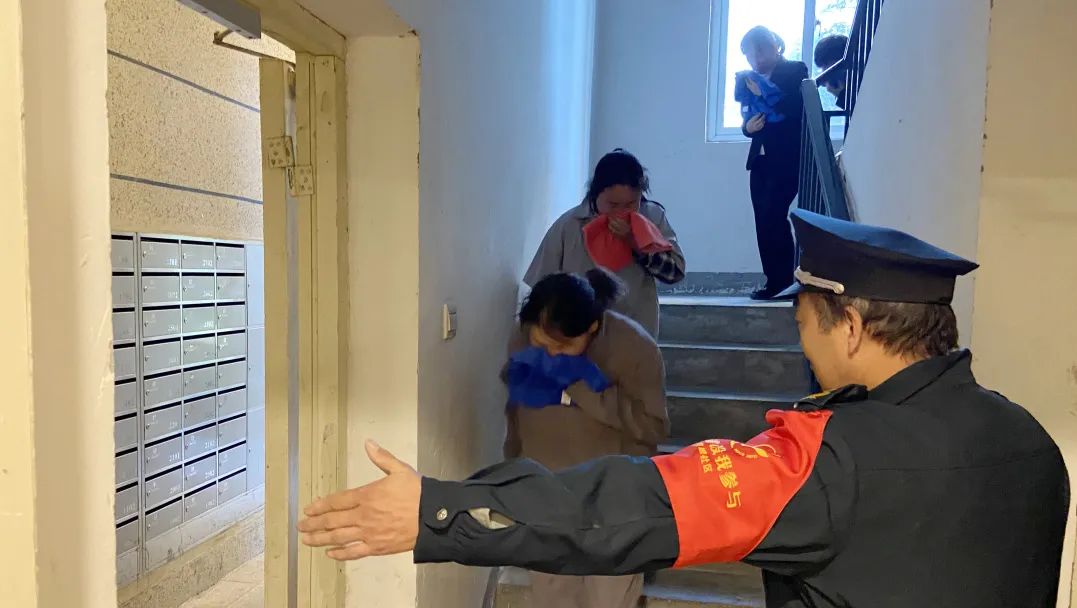 随着“火情”警报声响起,消防安全应急演习活动正式启动,物业指挥中心接到烟感报警信息后,立即启动消防应急预案,各小组接到指令后随即开展救援,灭火组人员穿戴装备前往现场进行灭火,疏散引导组组织人员捂紧口鼻快速有序撤离至安全地点,医疗救护组对“受伤人员”进行急救处理。