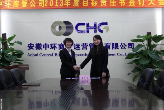 2013年3月7日商管公司在四楼会议室召开了2013年度目标责任书签订大会。总经理朱玉娟分别与各部门负责人签订了《2013年度目标管理责任书》,共7份,副总经理赵晖分别与企划部、行政人事部负责人签订了企划部、行政人事部《2013年度目标管理责任书》。
