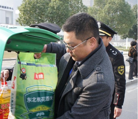 在“大爱中环•感动合肥”活动中,陈总为困难家庭将捐助的大米送上车。